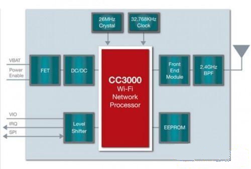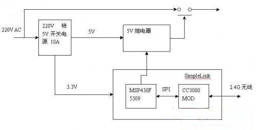 智能插座里最核心的無(wú)線連接方案采用了TI的SimpleLink Wi-Fi處理方案,通過(guò)TI的CC3000MOD和MCU MSP430F5309構(gòu)成了一個(gè)非常精簡(jiǎn)的無(wú)線網(wǎng)絡(luò)連接。CC3000MOD支持IEEE 802.11 b/g協(xié)議同時(shí)內(nèi)置了IPv4 TCP/IP協(xié)議棧,能夠與低速、低成本和低功耗的MCU(比如MSP430系列)組成非常理想的無(wú)線網(wǎng)絡(luò)處理。TI的SimpleLink方案提供了強(qiáng)大技術(shù)支持,簡(jiǎn)化了軟硬件設(shè)計(jì)以及App的開發(fā)。