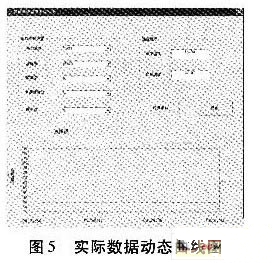 當(dāng)上位機MODBUS串口程序把下位機的實際數(shù)據(jù)采集上來并顯示界面中后,就可以對實際數(shù)據(jù)繪制動態(tài)曲線圖。動態(tài)曲線橫坐標(biāo)是時間,縱坐標(biāo)是實際數(shù)據(jù)值,兩個坐標(biāo)確定一個動態(tài)點。動態(tài)曲線的顯示過程是把動態(tài)的數(shù)據(jù)值放到一個數(shù)組中,每采集一個新的數(shù)據(jù)值存放在數(shù)組的最低位,數(shù)組中的所有數(shù)據(jù)位向前移一位,最高的數(shù)據(jù)位移出;在MSCOMM控件OnOnCommMscomm函數(shù)中得到當(dāng)前具體的時、分、秒,再將具體時間顯示在橫坐標(biāo)相應(yīng)位置,然后把數(shù)組中的所有數(shù)字以及每個數(shù)字所對應(yīng)的時間的坐標(biāo)點用線連接起來就構(gòu)成了動態(tài)曲線圖,動態(tài)曲線圖如圖5所示。