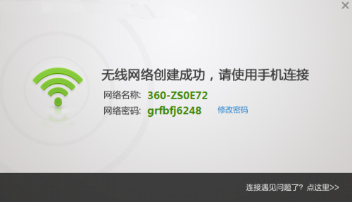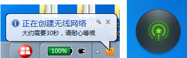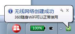 安裝完成后,系統(tǒng)任務(wù)欄會(huì)出現(xiàn)360隨身Wi-Fi的圖標(biāo),并提示無線網(wǎng)絡(luò)創(chuàng)建成功。