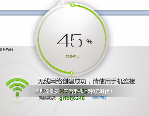 屏幕上會(huì)提示無線網(wǎng)絡(luò)創(chuàng)建進(jìn)度,30秒左右即可完成網(wǎng)絡(luò)創(chuàng)建。
