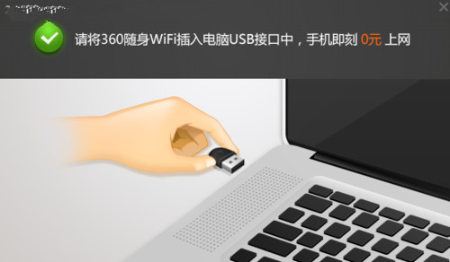 當(dāng)彈出提示框后,將360隨身Wi-Fi插入電腦的USB接口中。
