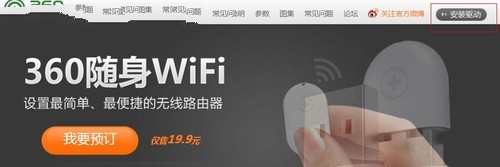 打開瀏覽器,訪問http://wifi.#/,如圖點(diǎn)擊頁面右上角的“安全驅(qū)動(dòng)”,下載360隨身Wi-Fi的驅(qū)動(dòng)程序。目前該驅(qū)動(dòng)程序不支持Windows8操作系統(tǒng)和MacBook Air系統(tǒng)。