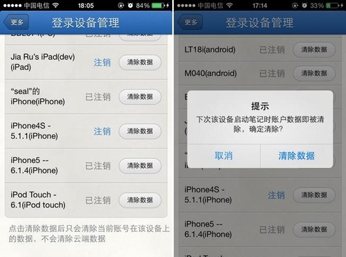 設(shè)備管理可以支持用戶遠(yuǎn)程注銷帳號,同時也可以遠(yuǎn)程清除某個帳號的數(shù)據(jù)。當(dāng)用戶的賬號在多個設(shè)備上登錄,若用戶不小心遺失手機(jī)、平板電腦,或者登錄公用電腦需要刪除本地資料,可以隨時登錄后臺遠(yuǎn)程清除賬號數(shù)據(jù),為數(shù)據(jù)添加更多安全保障,讓用戶使用更加放心。