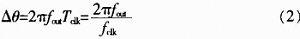 其中Sout是指該信號發(fā)生器的輸出信號波形,fout指輸出信號對應的頻率。正弦信號的相位:θ=2πfoutt.在一個clk周期Tclk,相位θ的變化量為: