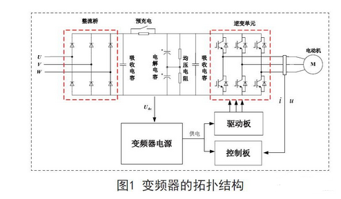 變頻技術目前得到了廣泛的應用,而變頻器的可靠穩(wěn)定運行決定了變頻器性能指標,作為基礎硬件,變頻器電源的高效可靠運行至關重要。如圖1所示為變頻器的拓撲結(jié)構,主要由整流單元、預充電電路、制動單元和逆變單元組成,從圖中可知,變頻器電源為驅(qū)動電路和控制電路提供直流電源,驅(qū)動電路則為逆變單元提供驅(qū)動能力強響應速度快的驅(qū)動脈沖,因而設計高效可靠變頻器電源硬件顯得尤為重要。