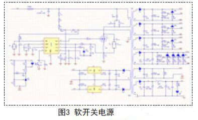 開關電源的軟開關主要是通過C5、C6、C7和初級繞組電感Lp組成的準諧振電路來實現(xiàn),具體的器件參數(shù)需根據(jù)開關電源的開關頻率來計算;同時第④腳電流檢測實現(xiàn)過流保護;;第⑧腳通過R16和C18進行啟動時的過壓鎖定,實現(xiàn)開關電源軟啟動;通過 TL431組成的反饋回路實現(xiàn)輸出電壓的穩(wěn)定。