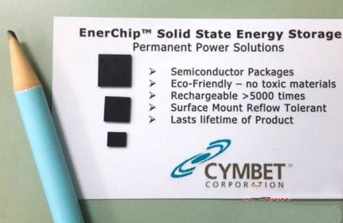 EnerChips可使用表面貼裝技術(shù)和回流焊安裝,不需要使用電池座。Cymbet EnerChip電池使用標(biāo)準(zhǔn)半導(dǎo)體集成電路工藝以及獲得專利的構(gòu)造技術(shù)而特別地制成。這些電池可以以裸片或者采用塑料封裝等形式提供,并可與電子設(shè)備中的其它集成電路一樣,使用相同的表面貼裝技術(shù)(SMT)和回流焊接安裝。EnerChip能夠在小的外形中提供能量存儲(chǔ)。
