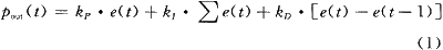 式中,e(t),e(t-1)分別為第t次及第t-1次采樣偏差值;pout(t)為第t次的控制量輸出值;kP,kI,kD分別為比例系數(shù)、積分系數(shù)和微分系數(shù)。合適的kP,kI,kD參數(shù)直接關(guān)系到控制的精度。