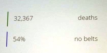 不過(guò)Medford的簡(jiǎn)報(bào)內(nèi)容帶來(lái)了一個(gè)令人驚訝的轉(zhuǎn)折:在2011年,美國(guó)有3萬(wàn)2,367人因?yàn)榻煌ㄊ鹿识鴨噬渲杏懈哌_(dá)54%比例是因?yàn)闆](méi)有系安全帶: