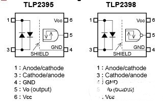 PLC既可接受多用于日本境內(nèi)的漏型邏輯輸入,也可接受多用于日本境外的源型邏輯輸入。隨著全球化進(jìn)程的推進(jìn),電橋電路正不斷將光電耦合器的上行比特流作為PLC輸入接口,從而為漏型及源型邏輯提供支持。全新光電耦合器分為緩沖邏輯“TLP2395”和反向邏輯“TLP2398”兩種類型,可通過以反向并聯(lián)方式結(jié)合兩個(gè)LED來為漏型及源型邏輯提供支持,進(jìn)而省去電橋電路。由于存在單個(gè)電路板包含多個(gè)電橋電路的情況,因此采用新款光電耦合器有助于縮小電路體積、降低功耗和成本。