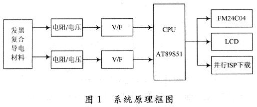 隨著電子工業(yè)及信息技術(shù)等產(chǎn)業(yè)的迅速發(fā)展,對(duì)于具有導(dǎo)電功能的高分子材料的需求越來(lái)越迫切。導(dǎo)電復(fù)合材料具有質(zhì)量輕、無(wú)銹蝕、易于加工成各種復(fù)雜形狀,尺寸穩(wěn)定性好,電導(dǎo)率在較大范圍內(nèi)可調(diào),易于大批量生產(chǎn)以及價(jià)格便宜等特點(diǎn),因此廣泛應(yīng)用于抗靜電、微波吸收、自控溫發(fā)熱材料、電磁波屏蔽等領(lǐng)域。其中,炭黑復(fù)合導(dǎo)電材料是目前應(yīng)用最廣,用量最大的一種。在此以AT89S51單片機(jī)為核心,設(shè)計(jì)一種簡(jiǎn)易的測(cè)量炭黑復(fù)合導(dǎo)電材料電阻和溫度系統(tǒng),系統(tǒng)框圖如圖1所示。