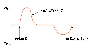 圖1. 移動電話放到你的耳邊時的典型加速度波形。