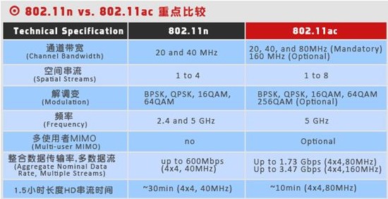 比起上一代Wi-Fi CERTIFIED n至多只能提供4空間流(Spatial Stream),802.11ac技術多了1倍的頻道應用自由度,提供最多達8條的空間流,提升無線通信系統(tǒng)效率并改善通信質量。同時,802.11ac提供最高256Qam的高密度解調,能夠有更高的信號處理和有效抗噪聲能力。