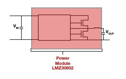 圖 2.采用 LMZ30602 的集成型電感器電源模塊