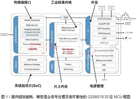 1) 用于血糖儀等便攜式醫(yī)療設(shè)備的Q32M210 32位混合信號MCU方案