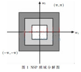 NSP是一種平移不變性的雙通道濾波器結(jié)構(gòu),它使NSCT具有多尺度性質(zhì),并且下一層次的濾波器可以通過對(duì)上一層的濾波器抽樣得到。其頻域分解圖如圖1所示。