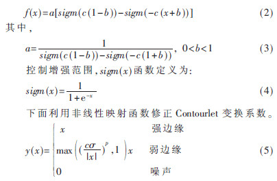 圖像變換后,對(duì)變換系數(shù)分三種:強(qiáng)邊緣、弱邊緣和噪聲。強(qiáng)邊緣每個(gè)方向的系數(shù)值都較大;弱邊緣在某一方向的系數(shù)大,但在其他方向上的系數(shù)小;噪聲是指那些在所有方向上的系數(shù)都較小[5]。LAINE A F提出的增強(qiáng)函數(shù):