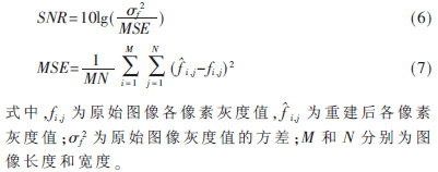 本文采用客觀評(píng)價(jià)標(biāo)準(zhǔn)信噪比SNR來衡量不同去噪方法去噪后圖像的客觀質(zhì)量,SNR的定義如下: